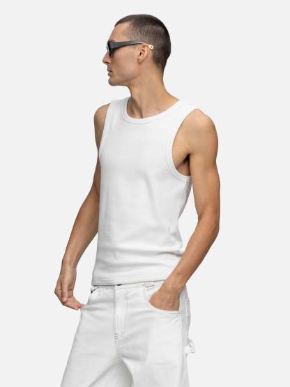 Crafted from ribbed cotton, the Ribbed Tank Top features a classic slim fit. A brand tag is attached at the side seam.