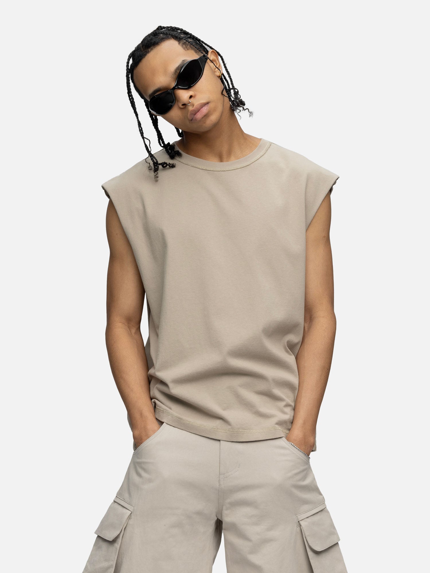 SLEEVELESS T-SHIRT CEMENT